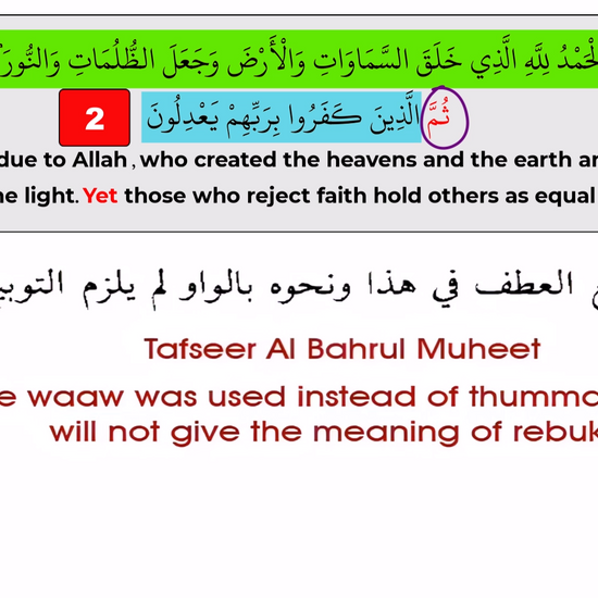 Emphasis and Superiority: Example of ثُمَّ used to emphasize importance or superiority.